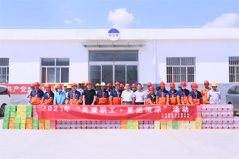 大暑將至,為進一步做好職工夏季高溫期間防暑降溫工作,關愛廣大一線職工的健康安全,把對廣大職工的關心關愛落到實處,7月21日,新區工會聯合石投集團工會開展“關愛職工·夏送清涼”活動,深入蘭州新區化工園區項目建設和生產一線開展慰問活動。新區黨群工作部副部長秦利軍、石投集團工會主席劉東斌一行深入項目現場,為一線職工送去防暑物資和關懷。