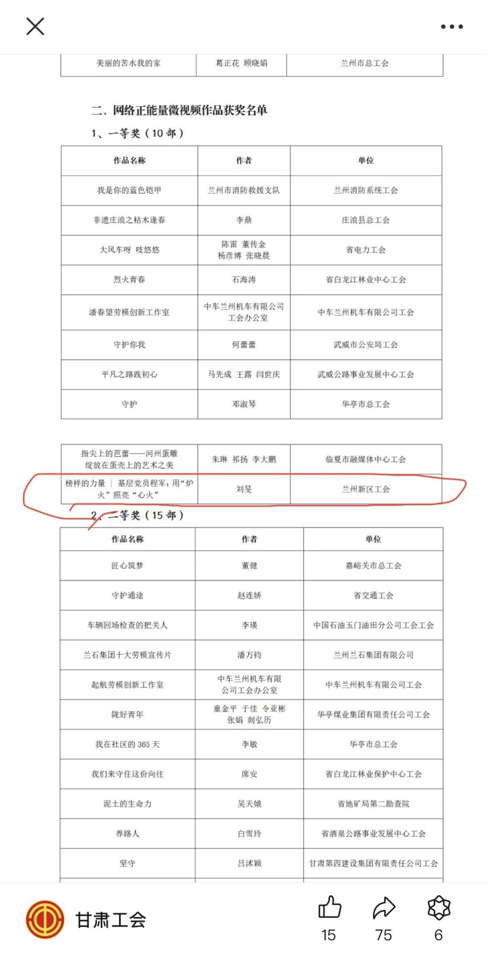 近日,甘肅省總工會和省委網信辦聯合開展的2024年“網聚職工正能量 爭做甘肅好網民”主題活動獲獎作品名單公布,由化工熱電有限公司工會主導拍攝,石化集團工會監制審核,經蘭州新區工會推薦的視頻作品《榜樣的力量 | 基層黨員程軍:用“爐火”照亮“心火”》在甘肅省1515部優秀作品中脫穎而出,榮獲一等獎。