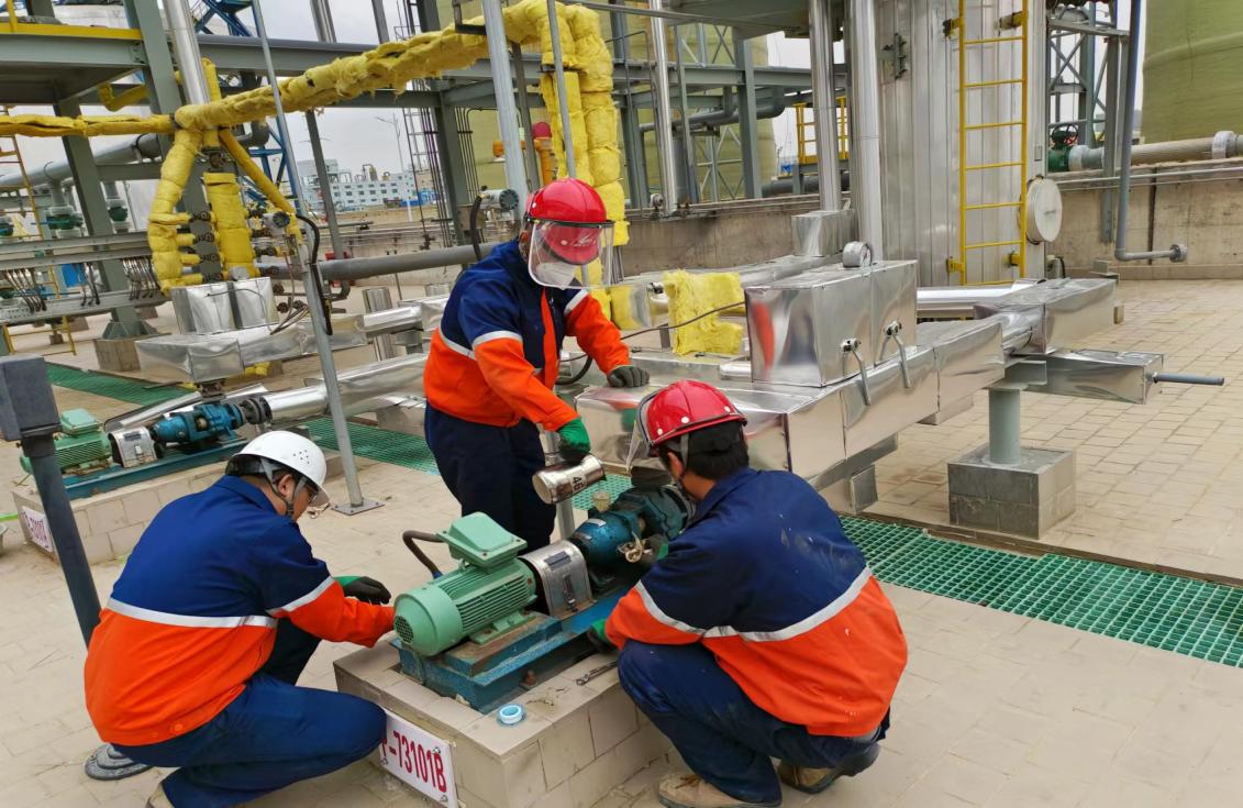 班組一線人員在班組長帶領下定時定期對各罐區及棧臺機泵進行全面盤車、檢查、保養,力爭在進行棧臺裝卸車、罐區取樣、吸收尾氣等生產操作時確保安全。 倉庫作為化工商貿公司的重大危險源之一,消防安全更是重中之重。項目部給各班組成員分配了定期檢查簽字、保養維修消防坊設施的任務。各級人員認真實施,在班長和各專工帶領下按時巡檢消防器材狀況、并打掃消防器材周邊衛生,將可能出現的消防隱患降到最低。