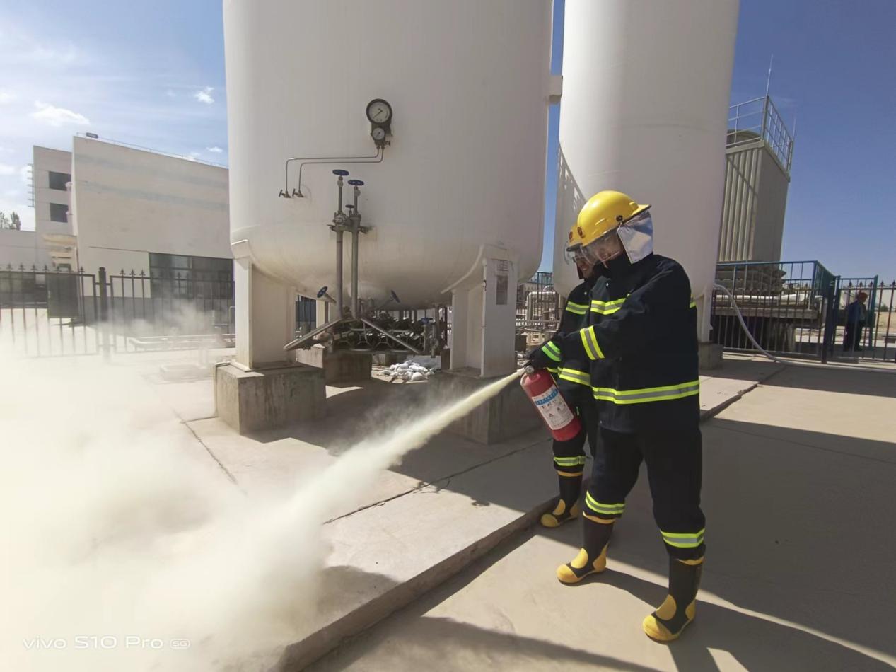 為有效預(yù)防和應(yīng)對(duì)突發(fā)事件應(yīng)急處置能力,識(shí)別資源的需求,明確相關(guān)機(jī)構(gòu)、人員的職責(zé),進(jìn)一步提升應(yīng)急響應(yīng)人員的業(yè)務(wù)素質(zhì)和能力。5月31日,博石環(huán)保公司秉承“安全第一,預(yù)防為主,綜合治理”的安全生產(chǎn)方針,結(jié)合公司實(shí)際情況,在廠區(qū)液氧罐作業(yè)區(qū)組織了液氧儲(chǔ)罐泄漏事故應(yīng)急救援演練。
