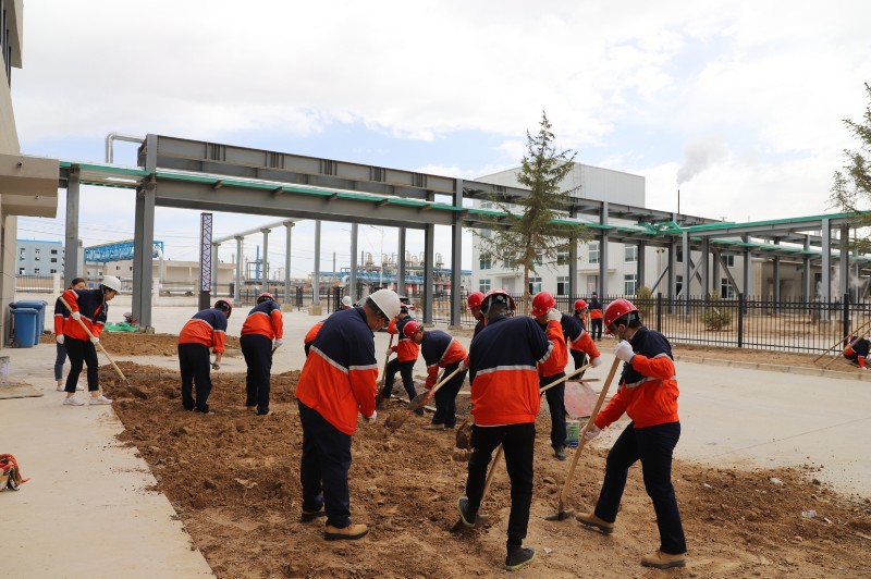 活動中,各位黨員用實際行動詮釋和踐行先鋒模范作用,一起揮鍬鏟土,清除雜物,翻土整地,拉車換土,培土種草,各個環節銜接有序,樣樣做得認真到位,個個忙得滿頭大汗。經過一上午的緊張勞動,廠區花壇種上了草籽,為廠區的綠意環繞種下了希望。大家團結一致,相互配合,有力發揚了“勁往一處使、汗往一處流”的團結、互助、友愛的精神。