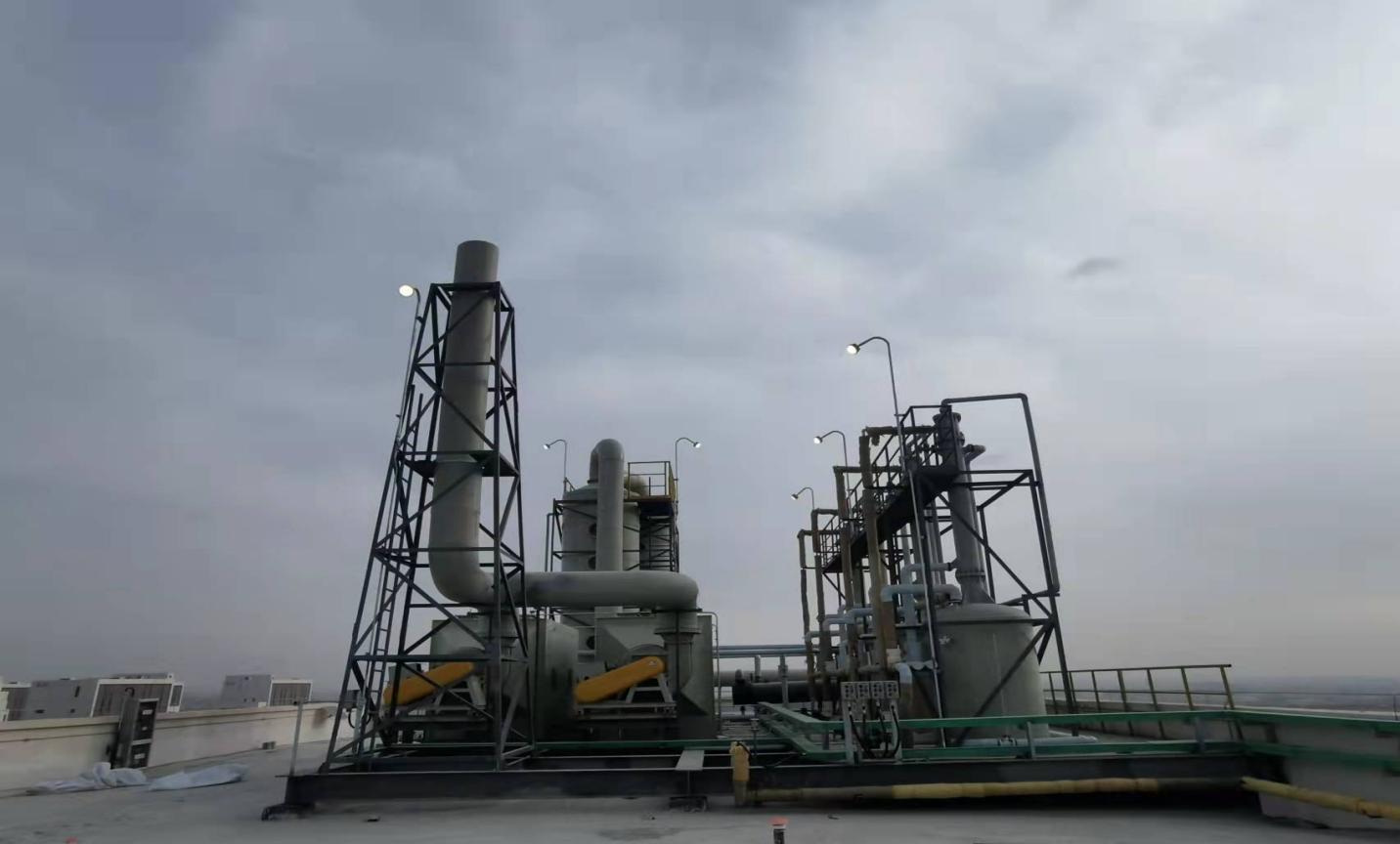 甘肅朗瑪旗云科技有限公司醫藥農藥新材料中間體生產車間是化藥原料生產車間,車間生產過程中揮發的有機溶劑和物料粉塵對環境有較大的污染,根據環保部門要求,此類氣體需要收集后經過有效處理才能排放。因此車間廢氣處理工作是重中之重,為確保未投產車間廢氣處理工程順利實現既定目標,項目部進行細致周密的施工準備。施工期間,項目部技術人員、業主在現場加強協調、監督和指導工作,建筑工人們冒著嚴寒加緊作業,確保工程進度,為項目順利完成進一步創造了條件。