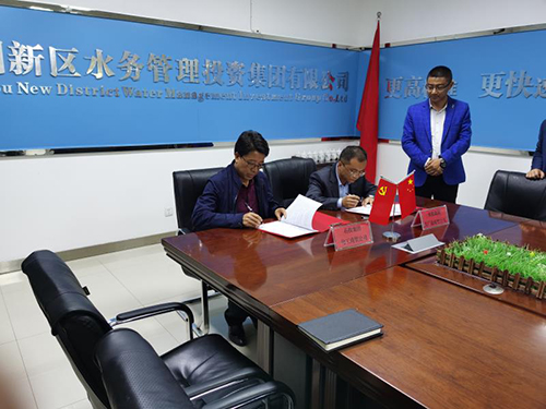 5月14日下午,蘭州新區化工商貿有限公司與蘭州新區禹廣通商貿有限公司在蘭州新區水務集團舉行戰略合作協議簽約儀式,雙方領導及業務骨干出席儀式。