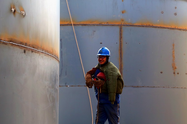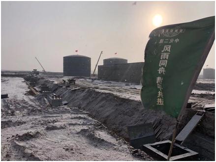 物流園貨場項目現場,各個儲罐、基礎配套設施屹立在風雪之中蔚為壯觀;印有“風雨同舟,攜手共進”的彩旗迎風飄揚;施工現場電焊弧光閃爍點燃著建設者的激情;施工人員手持圖紙,認真指導每一道施工工序。該項目蒸汽管線和地下官網工程建設、硝酸罐安裝工作、廊架鋼結構預制和辦公樓內部裝修工作均按期推進。