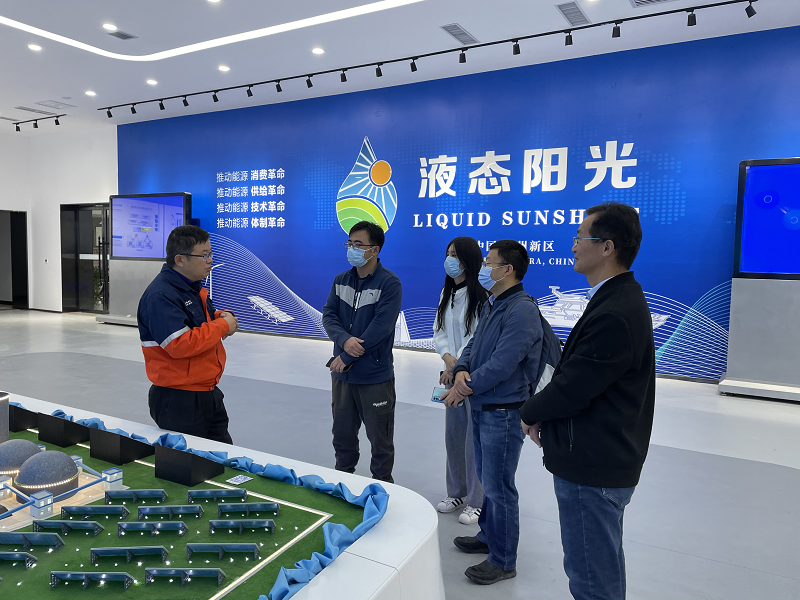 10月19日,國家能源集團新能源技術研究院有限公司研發主管高騰飛、孟瑞紅,陜西國華錦界能源有限責任公司高級工程師劉永平一行三人對蘭州新區石化集團“液態陽光”項目進行調研,石化集團工會主席劉東斌等陪同調研。