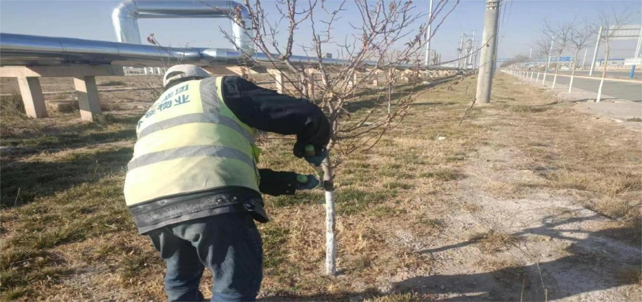 近日,為加強化工園區冬季綠化養護管理,進一步提高綠化景觀效果和管護質量,蘭州新區久泰物業公司多措并舉開展冬季綠化養護管理工作,精心組織養護單位工作人員,對各轄區內管護綠地的喬木、灌木、草坪特別是新植樹木及時進行冬灌,并做好枯木雜草清理修剪工作,以防苗木遭受低溫凍害和來年春旱及病蟲害,全面提升綠化養護管理水平。