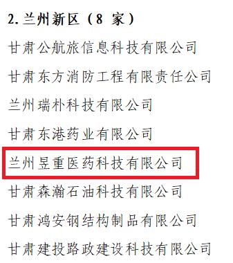 近日,省科技廳公布2022年度第二批甘肅省科技創新型企業名單,蘭州新區專精特新化工科技有限公司產業孵化器內的入孵企業蘭州昱重醫藥科技有限公司成功上榜。此次全省共有163家企業通過認定,其中蘭州新區8家企業。